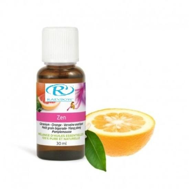 Le mélange d'huiles essentielles ZEN vous plonge dans une ambiance détendue et relaxante grâce à sa composition : huiles essentielles d’orange, de géranium, de verveine exotique, de petit grain bigarade, d’ylang ylang et de pamplemousse.
